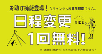『キャンセル料発生期間内の日程変更1回無料サービス』のご案内(キャンプサイトのみ)