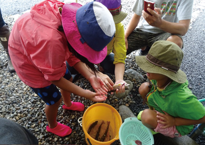 ピザを作ったり、川で小さな生き物を見つけたり。