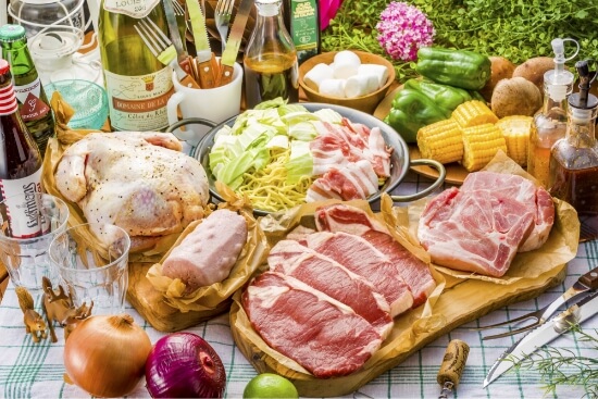 アメリカンスタイルのボリューム満点な食材をご用意。下処理済みなので、焼いて食べるだけ。キャンプご利用の方向け食材のみプランも人気です!